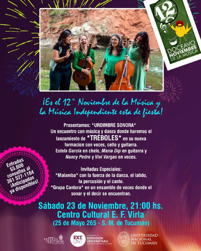 Este 23 de noviembre, hacen su aparición con un primer show anual en el Centro Cultural Virla, en un encuentro denominado “Urdimbre Sonora”, donde compartirán escenario junto a otros proyectos amigues como Malamba y la Grupa cantora. Todo esto, en el marco del 12º noviembre de la música y la música independiente.