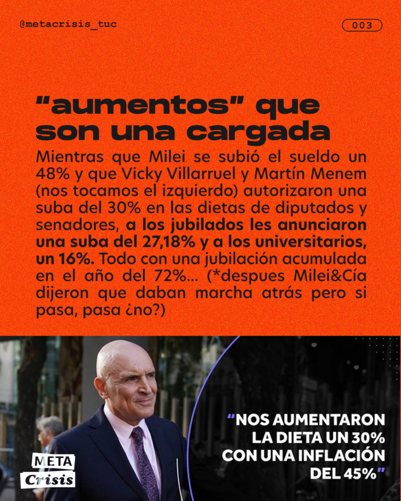 Si bien anoche, a horas del paro nacional de todas las federaciones universitarias docentes y no docentes, el gobierno anunció un incremento del 70% de las partidas universitarias que estaban congeladas, la medida es insuficiente con una inflación anual del 250% y el ahogo presupuestario continúa.